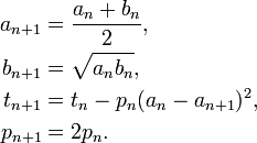 わずか3回のループで小数点以下14桁をクリア。実はこの時点で小数点以下18桁までクリアしている。このアルゴリズム、pn が曲者で、1024ループあたりで変数がオーバーフローしてしまう。浮動小数点で計算するのはこの辺が限度ということだ。