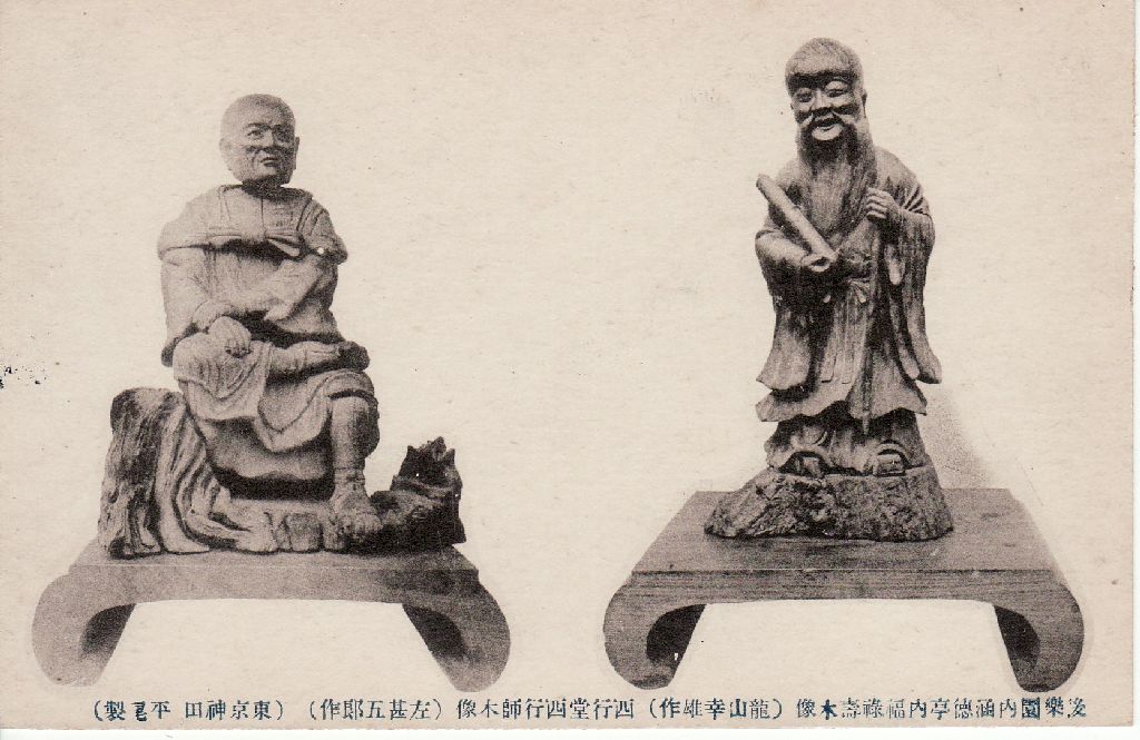 後楽園内涵徳亭内福祿壽木像(龍山幸雄作)西行堂西行師木像(左甚五郎作)(東京神田平?製)