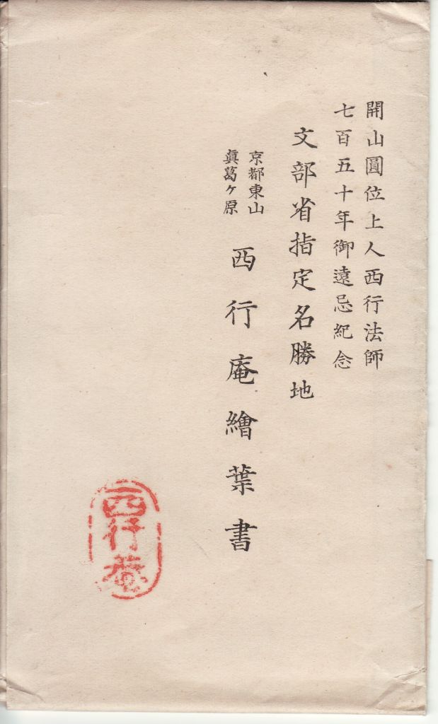 西行法師七百五十年御遠忌紀念だから、1940年(昭和15年)前後のものと推察される。
