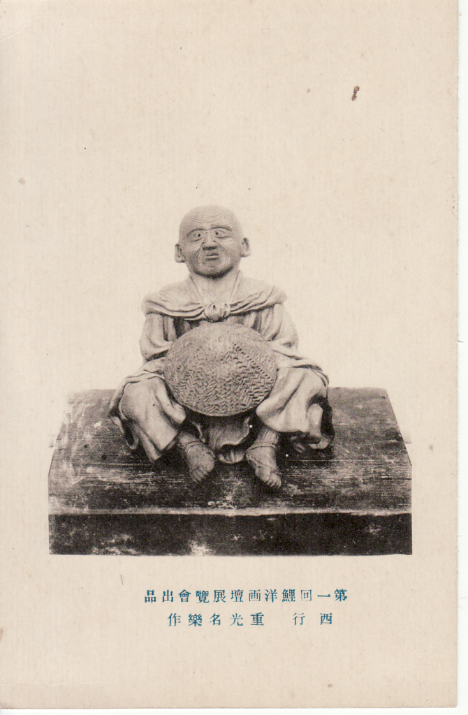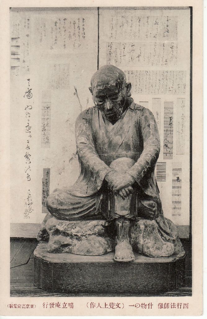 西行法師像 什物の一(文覺上人作) 鴫立庵發行 (東京高尚堂製)