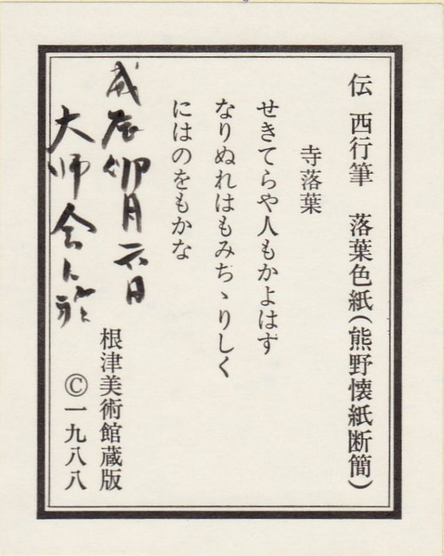 伝西行筆 落葉色紙(熊野懐紙断簡)
